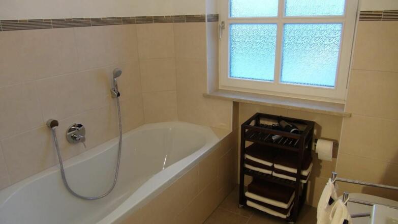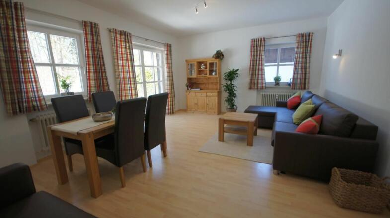 Sie erreichen Untergrainau (Ortsmitte) von unserer Wohnung aus in 15 Gehminuten durch einen Wiesengrund, der an einem kleinen Bach entlang führt, bzw. mit dem Auto in 2 Minuten.