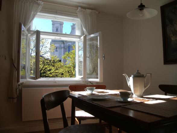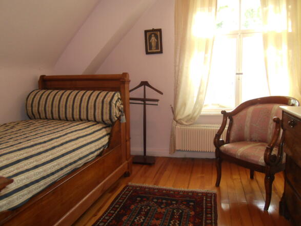 Baubiologisch sanierte Nichtraucher-Ferienwohnung in einem historischen Haus. Zentrale Lage im Ortskern umgeben von altem Baumbestand. Die 60 m² große Dachgeschosswohnung bietet Basilikablick und ist stilvoll mit Echtholzmöbeln eingerichtet. Räume und Betten (1 Doppelbett und 2 Einzelbetten in 3 Zimmern) werden allergiegerecht mit einem Delphin-Wassersauger gepflegt. Im Haus befindet sich eine Naturheilpraxis, die Ihnen auf Wunsch Aufbau- und Regernationsbehandlungen während Ihres Aufenthaltes anbietet.