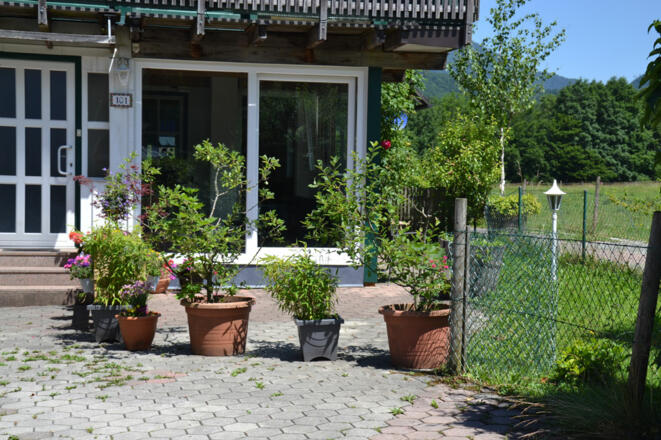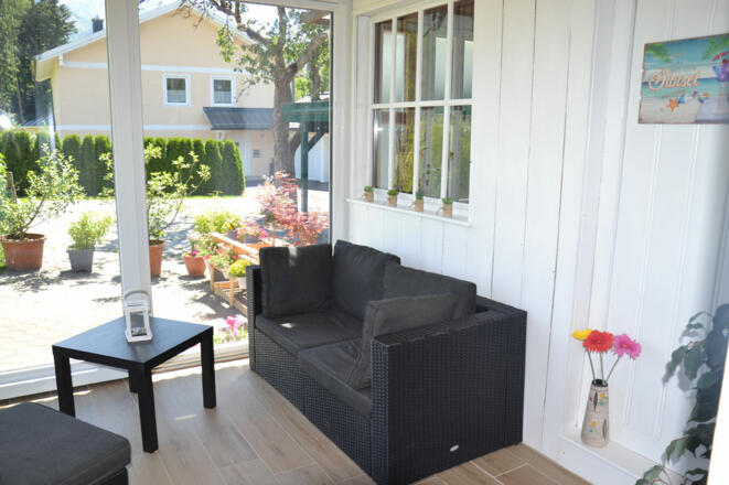 Die helle, neu ausgestattete Wohnung befindet sich im Parterre mit eigenem Hauseingang. Die Küche samt Essplatz ist integriert in den Wohnraum, trotzdem etwas abgeteilt. Zwei ruhige Schlafzimmer mit Doppelbetten und Kästen sowie eine bequeme Couch zum Ausziehen im geräumigen Wohnzimmer bieten Schlafmöglichkeit für insgesamt sechs Personen. Im Badezimmer befinden sich zwei Waschbecken samt Stauraum, eine große Dusche, mehrere Möglichkeiten zum Wäschetrocknen und auch eine Waschmaschine, die Toilette ist separat. Zusätzlich lädt ein heller gemütlicher Wintergarten mit Bergpanoramablick zum Entspannen ein.