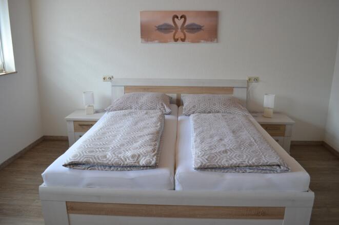 Ferienwohnung 2: DG-Wohnung, 2 Schlafzimmer, beide mit TV, voll ausgestattete Wohnküche, WC/Du