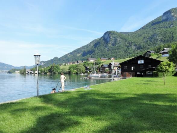 Zum öffentlichen Badeplatz Ried - der Eintritt ist im Mietpreis der Ferienwohnung inkludiert, bzw. dem Wassersportcamp sind es ca. 3 Gehminuten.