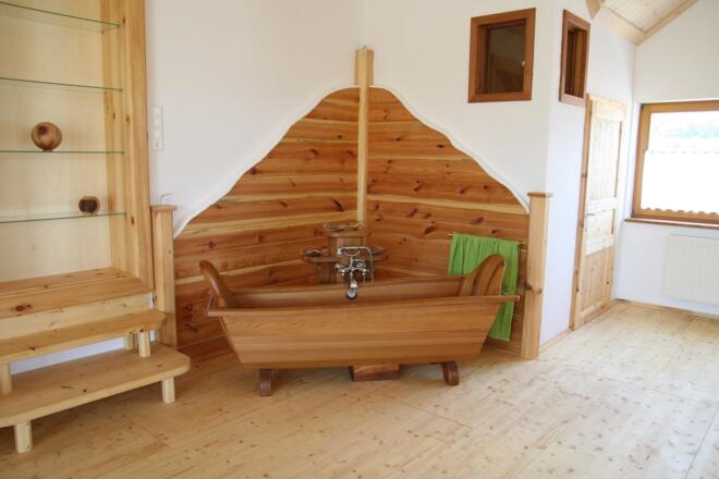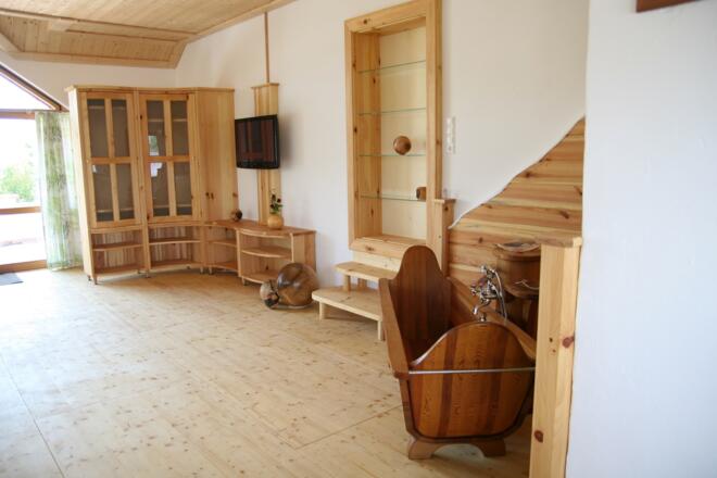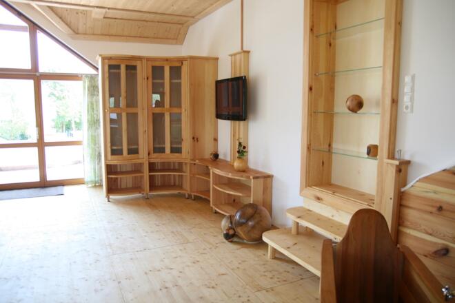 Eine Wohnung für Individualisten, naturverbundene Paare und Liebhaber von Holz und Raum Handgeschreinertes Mobiliar mit viel Liebe zum Detail, offene, klare Strukturen und ein lichtdurchfluteter Raum mit direktem Blick in die unverbaute Natur– das erwartet Sie in dieser ganz besonderen Ferienwohnung zwischen Altmühltal und Regensburg. Idylle für Ruhesuchende und Aktivurlauber Sie wohnen in Mitterfecking, einem kleinen idyllischen Dorf bei Kelheim. Es bietet wohltuende Ruhe und ist dabei bestens verbunden mit allen Rad- und Wanderwegen der Region. Mit 800 Metern ist das Naturschutzgebiet Sippenauer Moor nur einen Katzensprung entfernt. Die Radwege in Richtung Langquaid, Saal, Abensberg und Kelheim errreichen Sie von Mitterfecking aus auf direktem Weg. Und falls Sie lieber zu Fuß unterwegs sind: Unsere schattigen Wälder und blühenden Wiesenlandschaften sind das ideale Terrain für ausgedehnte Entdeckungstouren durch die Natur. Bei uns können sie, auf Ihren persönlichen Wunsch hin, kreativ werden. Schöne Sachen aus Holz selbst machen. Wir lieben Holz. Aus dieser Leidenschaft schöpfen wir tagtäglich bei unserer Arbeit in der hauseigenen Schreinerei. Gerne führen wir auch Sie ein in die Kunst der Holzverarbeitung. Sie haben sich schon immer für Holz und seine Verarbeitungsmöglichkeiten interessiert? Drehen Sie Ihre eigene Holzkugeln oder stellen Sie Brotzeit-Brettchen mit persönlicher Widmung her. Sie haben eine Idee für ein neues Möbelstück? Planen Sie es mit uns. Sie suchen nach Workshops rund ums Holz? Wir bieten Kurse zu verschiedenen Themen. Teilen Sie uns Ihr Wunschthema unverbindlich mit!