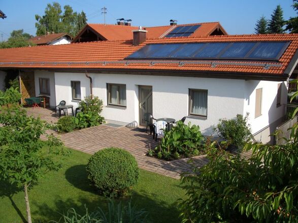 Zwei gepflegte Ferienwohnungen für 2-4 Personen, großer Wohnraum mit Küche und Essecke, Ausziehcouch, Schlafzimmer, Bad bzw. Dusche und WC, ebenerdig, rollstuhlgeeignet, am Fußweg zum Chiemsee, 10 Min zum Ortszentrum, 5 Min zum Bahnhof. Ausstattung: TV, Radio, Mikrowelle, Kaffeemaschine, Wasserkocher, Handtücher, Bettwäsche Service: Kinderbett, Hochstuhl, Waschmaschine, Beistellbett, Liegewiese, Südterrasse, Parkplatz
