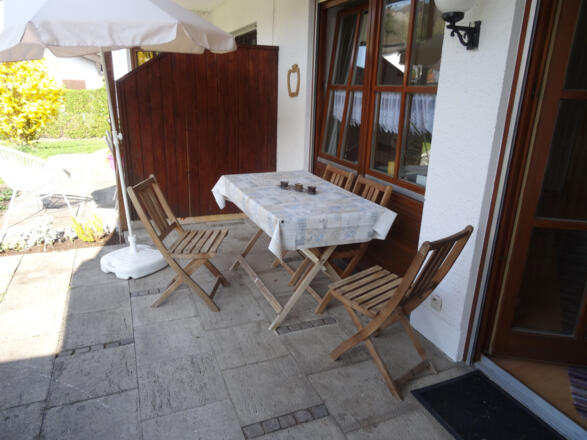 Die Wohnung ist ein helles 1-Zimmer-Appartement mit genügend Platz, eine ausziehbare Couch ermöglicht eine dritte Schlafgelegenheit, TV kann gesehen werden von Bett, Sofa oder Essecke. In der separaten Küche findet sich alles Notwendige, selbstverständlich auch Kaffeemaschine, kleiner Backofen und Kühlschrank, im Bad sind Dusche sowie WC, dazu Handtücher, Fön und zwischen Küche und Bad ist eine Garderobe. Bettwäsche wird gestellt. Fenster und Terrasse schauen nach Süden, die Liegewiese wird von einer Hecke begrenzt, auf der Terrasse sind eine Sitzgarnitur, Liegen, ein bequemer Ruhesessel sowie ein Grill. Das Haus liegt in einer sehr ruhigen Gegend und doch ist man in fünf Minuten im Zentrum des Ortes. Der zur Wohnung gehörende Parkplatz ist direkt vor der Haustür. Im Keller sind verschließbare Fahrradabstelle und ein Kellerabteil. Die Wohnung ist ganzjährig buchbar. Hinweis für Gehbehinderte: Von der Haustür führen sechs Stufen zur Wohnungstür.