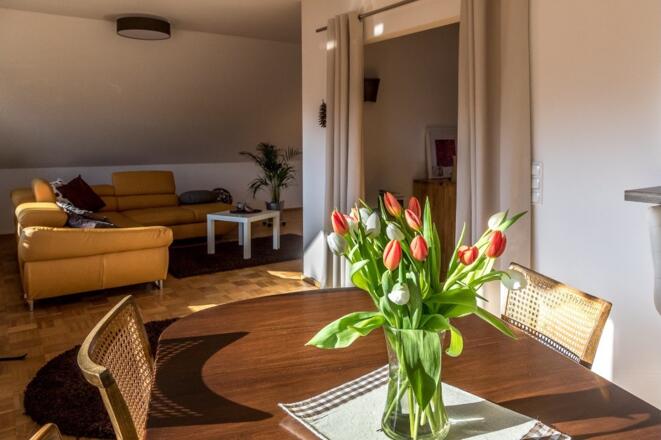 Schöne Ferienwohnung mit Dachterrasse im Grünen für bis zu 5 Personen.