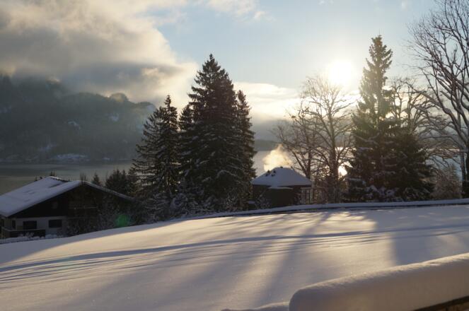 Willkommen im Haus Schossleitner! Exklusiv im Landhausstil eingerichtete Wohnung mit eigenem Hauseingang. Die Wohnung befindet sich im 1. Stock mit Blick über den See.