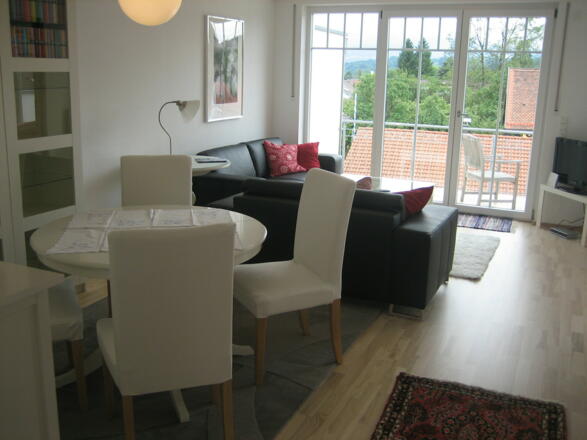 Lage: große Ferienwohnung mit faszinierendem Panoramabergblick in zentraler Lage (5 Gehminuten zum Marktplatz und zur Klinik Kronprinz), ideal für Bahnreisende (5 Minuten zum Bahnhof), in ca. 30 Gehminuten erreichen Sie den Chiemsee Ausstattung: große, gemütliche, sonnige Ferienwohnung (76qm) im 3. OG, großzügiger Südbalkon, 2 großen Schlafzimmer, TV, Radio, komplett ausgestattete Küche mit Geschirrspüler, Bad/Dusche/Badewanne/WC und separates WC, Fön. Im Haus befindet sich ein Fahrstuhl. Absolut Nichtraucher. Keine Haustiere.