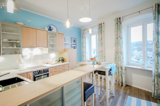 Direkt am historischen Stadtplatz erwarten Sie eine top-renovierte 125 m2 große Ferienwohnung I für 2-6 Personen und eine 85 m2 große Ferienwohnung II für 2-4 Personen. - Altbauwohnungen mit 3 m Raumhöhe.