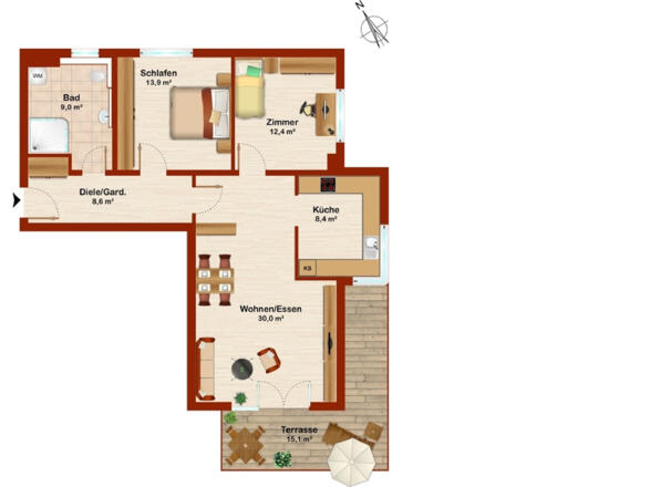 Wir bieten im Herzen von Bad Aibling eine traumhaft schöne 3-Zimmer-Wohnung. Die Lage ist sehr zentral und dennoch absolut ruhig und sonnig.