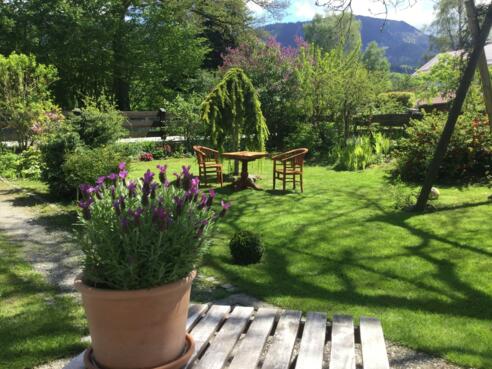 Die neu ausgebaute Ferienwohnung befindet sich im hinteren Teil, im 2. Stockwerk des alten Polizeihauses von Grainbach. Der große Wohn-Schlafraum, mit Doppelbett und ausziehbarer Couch, bietet für bis zu 4 Personen Platz. Vom Balkon haben Sie einen sensationellen Blick, angefangen von den Obstangern des Ortsrandes über Törwang bis zur großen Eiche der Aussichtsiapelle. Die stilvoll eingerichtete Wohnung verfügt über eine gut ausgestattete Küche und ein geräumiges Bad. Handtücher und Föhn sind vorhanden. Im großen Garten vor dem Haus finden Sie Sitzgelegenheiten und im Hof einen Stellplatz für Ihr Auto oder Motorrad Sie erreichen in wenigen Metern zu Fuß den Dorfbäcker mit seinen frischen Backwaren und den Gasthof Maurer, sowie - unsere besondere Empfehlung- den Gasthof Alpenrose, idyllisch bei der Kirche gelegen, mit hervorragender Küche, erlesenen Weinen und unverwechselbarem Ambiente. Ebenfalls ab Haus können Sie wunderschöne Wanderungen, z. B. durch die Filze zum Naturbad und zur Wasserretanlage, über die Kräuterwiese zur Käser Alm oder auf die Hochries starten. Ein besonderes Erlebnis für geübte Mountainbiker: Der Bikepark von Grainbach. Im Winter können Sie gleich ein paar Meter hinter dem Haus in die Langlauf-Loipen der Gemeinde einsteigen.