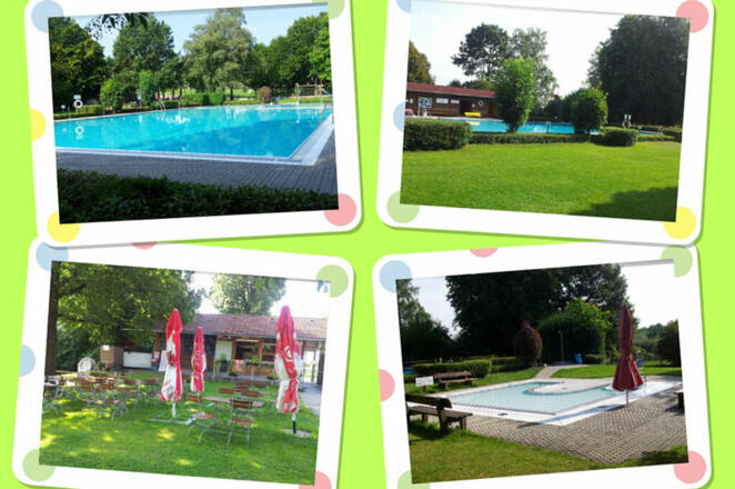 Schwimmbad mit Liegewiese und Babyschwimmbecken in der Gemeinde Bad Aibling.
