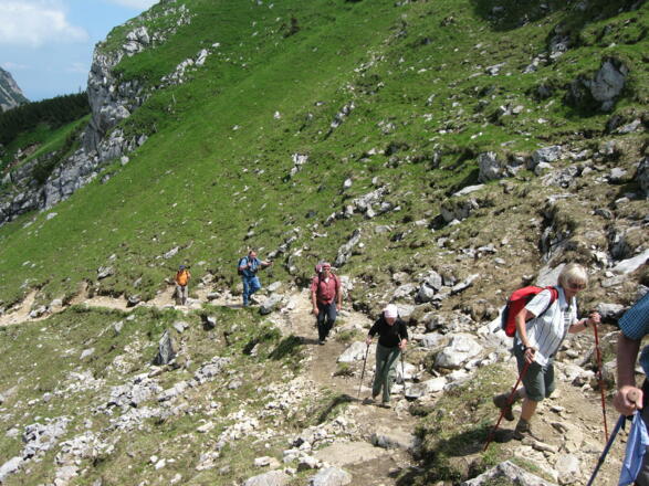 Aufstieg über den Bergpfad teils sehr grober Weg, nach Regenfall sehr rutschig, zur Sonnenalm. Abstieg über die Gessenwang Alpe, Bergpfad teilweise Erde und Wurzeln - rutschig. Das letzte Stück am Forstweg zurück zum Hotel