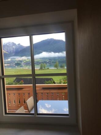 Im Landhausstil neu errichtete Ferienwohnungen mit Blick auf den Wolfgangsee in Toplage.