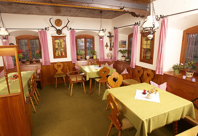 Unser denkmalgeschütztes Haus in erhöter, absoluter ruhiger Lage, verfügt über eine große Sonnenterrasse mit Garten und Liegewiese. Es stehen zwei Aufenthaltsräume mit Kabel-TV zur Verfügung. Alle Zimmer und Wohnungen sind mit W-LAN Anschluss, Holzböden bzw. Fliesen ausgestattet. Ausgangspunkt vieler Berg- und Wanderwege, sowie zahlreicher Mountain-Bike-Touren. Im Winter durch die Hanglage, ideales Gelände für Kinder zum Schlittenfahren. Geräumte Winterwanderwege (z.B. östl. Höhenweg) direkt am Haus. Langlauf-Loipe ca. 1,5 km entfernt. Eine nahegelegene, auch im Winter bewirtschaftete Alm, bietet die Möglichkeit zu einer gemütlichen Einkehr. Wochenend-Telemark-Kurse sind für den ganzen Winter buchbar. Ganzjährig geöffnet.