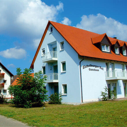 Unser neu erbautes Gästehaus liegt in ruhiger Lage am Ortsrand von Eichelburg, ca.1,5 km vom Rothsee entfernt.