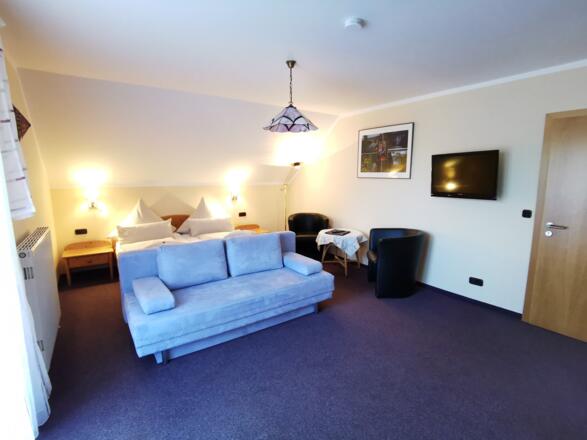 Haus in sehr ruhiger Südhanglage, am Ortsrand in Waldnähe gelegen. Es verfügt über sehr schön ausgestatte 5 DZ , 1 MZ mit Du/WC , Balkon oder Terrasse mit herrlicher Aussicht,sowie 2 EZ. Alle Zimmer mit DU/WC, Radio u. Fön, u. digit.SAT/TV. Aufenthaltsraum mit Wintergarten und Terrasse. Frühstücksbuffet, Liegewiese, Parkmöglichkeit im Hof und Unterstellmöglichkeit für Fahrräder.Fahrradverleih (auch E-Bikes), Internetzugang über WLAN im gesamten Haus, idealer Ausgangspunkt für Wanderungen, auf Wunsch auch geführte Wandertouren.