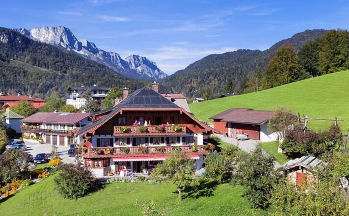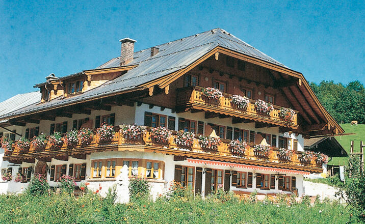 "Urlaub auf dem Bauernhof" im Herzen von Berchtesgaden mit Rundblick auf die Berge. Ruhige, sonnige Lage. Nur wenige Gehminuten zur Ortsmitte. Komfortable Zimmer mit Balkon, DU, WC, TV usw. Gemütlicher Aufenthaltsraum mit Kachelofen. Großer Kinderspielplatz mit Streichelzoo, Liegewiese, Sonnenterrasse, Grillplatz. Hauseigene Parkplätze. Neuer "Panorama-Rundweg" direkt am Hof. Außerdem vermieten wir großzügige, mit viel Komfort ausgestattete ****FeWos. Ganzjährig geöffnet.