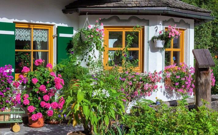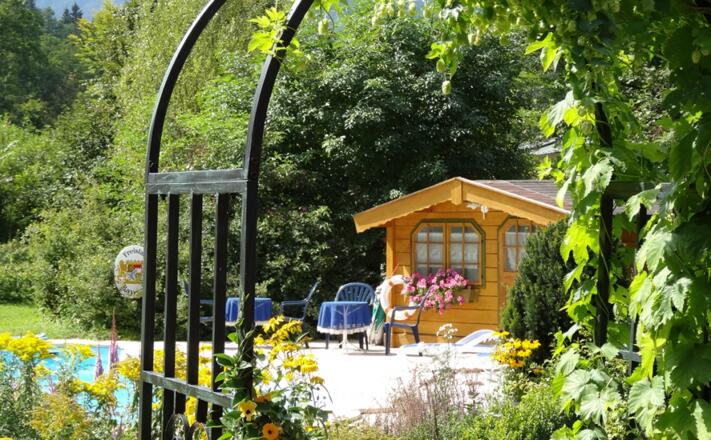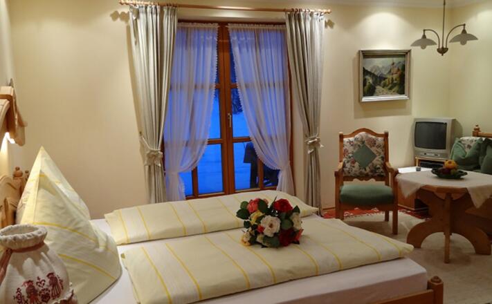 Unser Haus in ruhiger, zentraler Ortslage mit herrlichem Bergblick ist der perfekte Ausgangspunkt vieler Wanderungen. Entspannen Sie auf der großen Liegewiese mit Privatpool, Sauna, Tauch- und Kneippbecken. Fitnessraum, Solarium und Infrarotkabine. FeWo mit separatem Wohn- und Schlafzimmer (Frühstücksbuffet zubuchbar), liebevoll gestaltete Gästezimmer und Studios mit Frühstücksbuffet, Balkon oder Terrasse, TV, Radio, Teilnahme am Vital-Aktiv-Programm und WLAN kostenlos. Januar - Mai Sparwochen € 165,-/7 Nächte p. P.