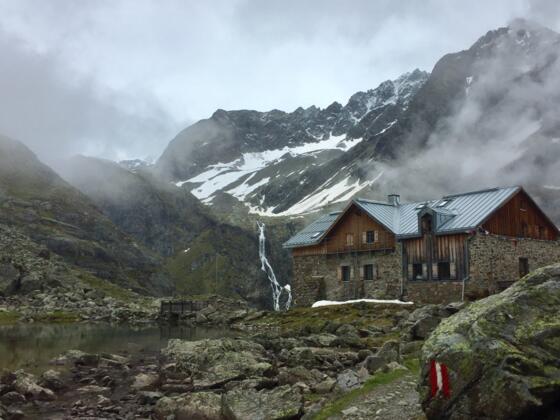 Von Parkplatz in Gries geht es auf der asphaltierten kleinen Straße zum Weiler Winnebach mit seinen weithin sichtbaren Hotels. Hier beginnt der bestens ausgeschilderte Weg zur Winnebachseehütte (2362m), der sich stetig auf der Nordwestseite des Winnebachtales hinaufschlängelt. Nach knapp 800 Höhenmetern ist die sehr schöne Hütte erreicht und bietet sich für eine Stärkung oder Übernachtung an.