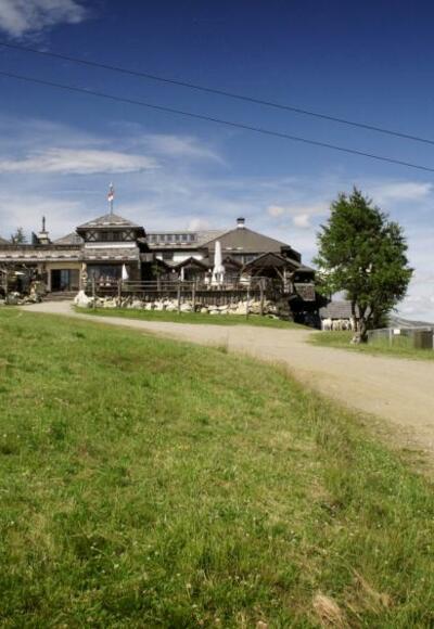 Im Winter direkt an der Skipiste. Auch der Rodelweg führt zur Gamskogelhütte (ca. 1,5 km), Rodel gegen Gebühr zum Ausleihen,