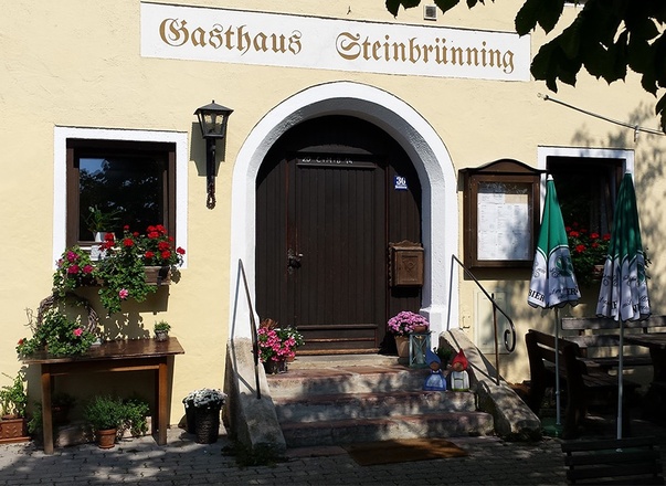 Unser gemütliches Gasthaus, seit Jahrhunderten Dorfwirtshaus in Steinbrünning, liegt mitten im Grünen, unmittelbar neben der Kirche des kleinen idyllischen Dorfes Steinbrünning zwischen Freilassing und Laufen.