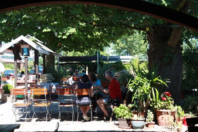 Lassen Sie sich von der regionalen Küche mit frischen Produkten verwöhnen. Der schöne Biergarten mit Kastanienbäumen lädt nicht nur den Radler zur Brotzeit ein.