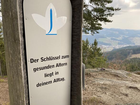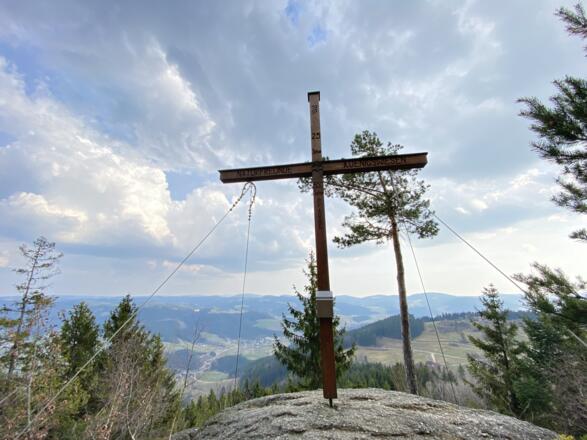 Auch eine der Stationen des Johannesweges befindet sich beim Gipfelkreuz.