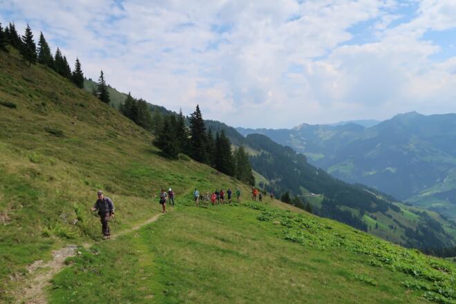 Wir fahren vom Hotel Alpendorf ca 20 Minuten zum Parkplatz Himmelsknoten oberhalb des Holzlehenbauers in Grossarl. Von dort gehen wir anfangs die Forststraße entlang bis zur Mooslehenalm. Von der Mooslehenalm geht es die Forststraße weiter Richtung Schiedalm. Nach ca. 15. Minuten biegen wir rechts auf einen schmalen schönen Wanderweg Richtung Schiedalm. Diese erreichen wir nach ca 30-40 Minuten. Von der Schiedalm gehen wir den Wanderweg weiter in Richtung Schiedreitspitz. Bitte auf die Wegmakierungen achten. Diese sind ab und zu schwer zu erkennen. Den Sattel des Berges erreichen wir nach weiteren 30-40 Minuten. Und dann ist es nur mehr ein Katzensprung bis zum Kreuz des Schiedreitspitzes. Dieses ist kurz vor dem eigentlichen Spitz.
