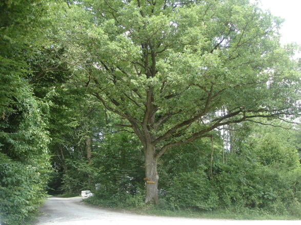 Es gibt am Wegesrand Informationstafeln über Bäume und Geotope.