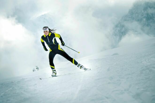Langlaufausrüstung. Warme Bekleidung.
