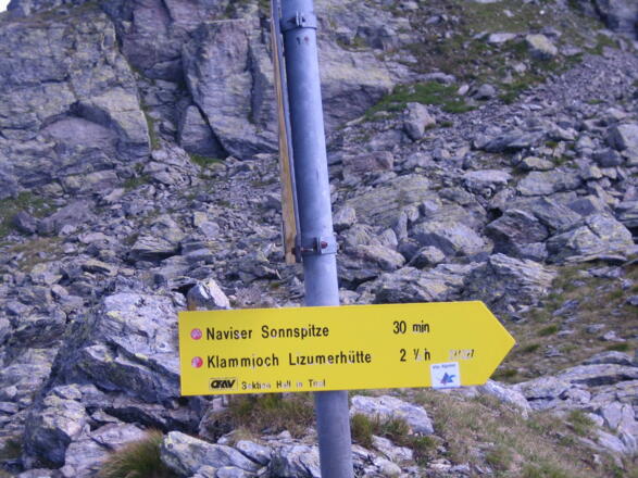 Weiter geht es hinunter zum Naviserjöchl auf 2.479m und anschließend auf die Naviser Sonnenspitze mit 2.619m. Danach vom Mölsjoch 2.334m zum Klammjoch 2.359m, hier kann man auch noch die Mölser Sonnenspitze mitnehmen. Nun geht es durch einen Almrosengürtel ins Wattental zum Tagesziel der Lizumer Hütte auf 2.019m.