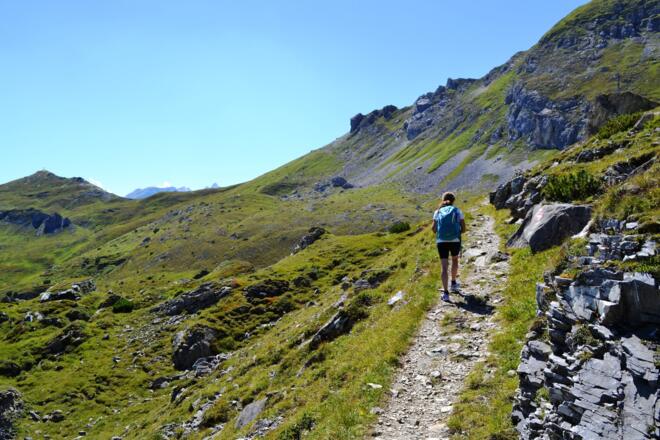 Festes Schuhwerk, Regenjacke, Sonnenschutz, Wasserflaschen und leichter Rucksack mit dem allernötigsten zum Übernachten