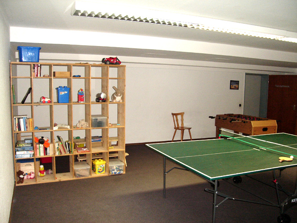 Gegen Gebühr: Münz-Waschmaschine, Münz-Trockner. Im Kellergeschoss: Sauna, Abstellraum und Trockenraum/Skiraum, Gemeinschafts-Aufenthaltsraum mit Tischtennis, Kicker, Spielecke und Sitzgelegenheiten. Genügend Parkplätze vorhanden auch für Busse möglich. Restaurant/Cafe mit Biergarten im gleichen Haus auf der Rückseite. Hunde erlaubt, bitte telefonieren Sie vorher mit Ihrem Gastgeber.