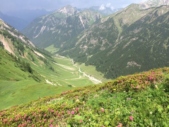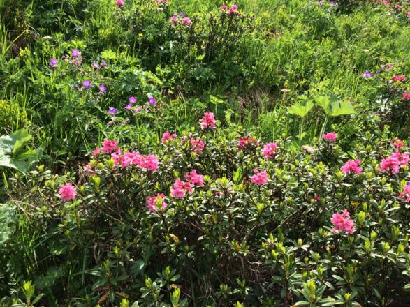Die Wanderung durch das Plötzigtal ist wunderschön. Im Juni blühen Alpenrosen und viele Bergblumen.