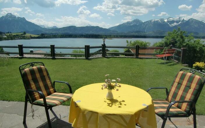 Alle Ferienwohnungen und Doppelzimmer sind mit Panoramablick und Südbalkon/Südterrasse, Wohnbereich mit Küche und Schlafzimmer getrennt. Jede Ferienwohnung ist individuell und behaglich eingerichtet. Spitzenlage, schönste Südhanglage mit See-, Berg- und Schlossblick, 150 m zum See.Wlan vorhanden, Parkplätze am Haus, Teeküche mit Kühlschrank.Doppelzimmer mit Dusche/WC,TV oder Einbettzimmer mit Dusche/WC, TV zu jeder Ferienwohnung zubuchbar.SonstigesParkplatz am Haus, Bettwäsche und Handtücher inklusive.