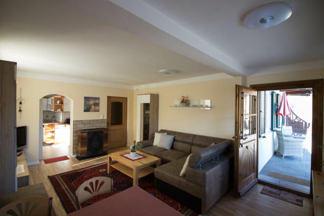 Unsere Wohnungen sind liebevoll eingerichtet, für 2-4 Personen, Wohnzimmer mit ausziehbarer