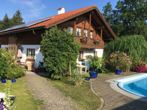 Fühlen Sie sich wie zu Hause in unserem gemütlichen, komfortablen, ruhig am Waldrand gelegenen Ferienhaus. Alle vier Ferienwohnungen haben im November 2020 nach der DTV Klassifierzung **** Sterne erhalten ! .Vier sehr gepflegte Ferienwohnungen (ca. 50qm) mit Sat-TV, Telefon, Mikrowelle, Spülmaschine ,eigene Waschmaschine, eigener Balkon, oder eigene Terrasse. Alle Ferienwohnungen modern und neu ausgestattet mit Handtuchtrockner Duschkabinen etc. Sehr gepflegte Anlage. Parkplatz dirket vor dem Haus. Solarbeheiztes Freibad (Mai-September), Sauna, Dampfbad, Fitnessraum, Solarium, Grillplatz, große Liegewiese. Hinter dem Haus Naturpark mit Bach und Fischweiher Familiäre, kinderfreundliche Atmosphäre,