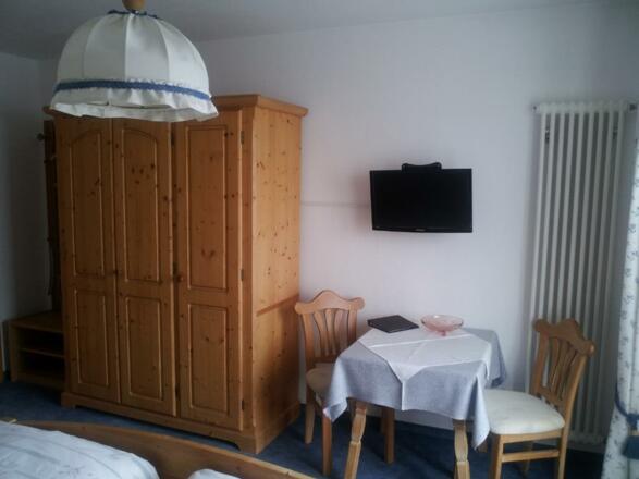 Ruhige Lage am Ende der Straße, gepflegte Zimmer mit großem Südbalkon, Schloss- und Bergblick, Aufenthaltsraum, TV, Kühlschrank und Kaffee-/Teemaschine, Lektüre.SonstigesDoppelzimmer mit Dusche/WC und Frühstück ab drei Nächten: 25 € pro Person, zzgl. örtliche Kurtaxe.W-LAN 5 € pro Aufenthalt