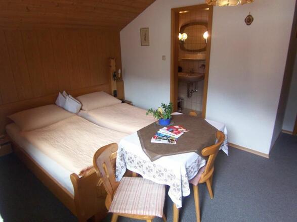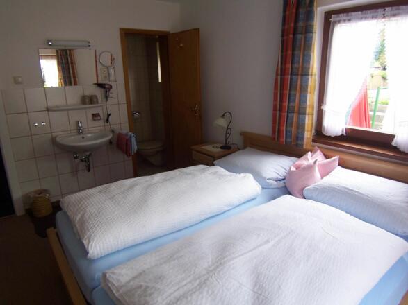 Gemütliche Privatpension in ruhiger, sonniger Lage. Alle Zimmer sind mit Dusche/WC, Kabel-TV, Radio, Fön und Balkon oder Terrasse ausgestattet. Schöner, rustikaler Aufenthaltsraum mit TV. Liegewiese und Parkplätze sind direkt am Haus. Schwimmbad, Wanderwege und Langlaufloipe in der Nähe.