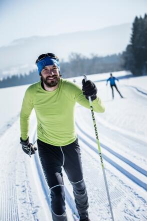 Die Loipe ist für Skater und klassische Langläufer gespurt.