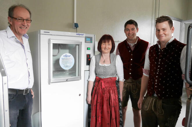 Dass es ihnen da so richtig gut geht, schmeckt man auch in ihrer Milch, die es rund um die Uhr auch am Milchautomaten zu holen gibt. Der Rohmilchautomaten kann täglich von 6:00 Uhr bis 24:00 Uhr bedient werden. Außerdem bieten wir auch ab sofort Rohmilchkäse aus eigener Milch an.