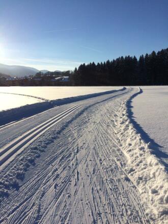 Abwechslungsreiche Loipe zwischen Hausham und Agatharied. Die Loipe verläuft sonnig und mit tollen Ausblicken in die Alpen zwischen Hausham und Agatharied. Sie ist noch ein echter Geheimtipp, nur 3 Kilometer vom Schliersee entfernt!