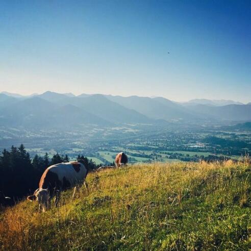 Vom Blomberghaus geht es vorbei an der Bergstation und der Wackersberger Alm zum Heiglkopf. Dort ist der perfekte Platz um sich eine Pause zu gönnen und die Aussicht zu genießen. Weiter geht es den Hügel hinab und rechts Richtung Blomberghaus. Hier kann man sich auf eine urige Brotzeit und eine sonnige Terrasse freuen.