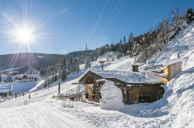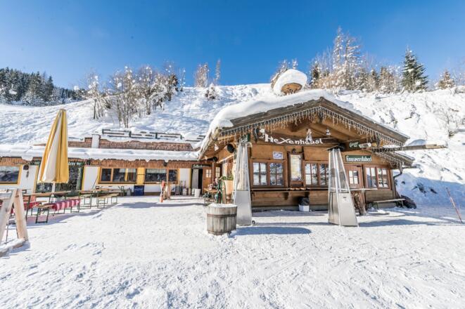 Denn das Hexenhäusl liegt direkt an der Talstation der Kabinenbahn Karbaachalm und somit auch direkt am Parkplatz.
