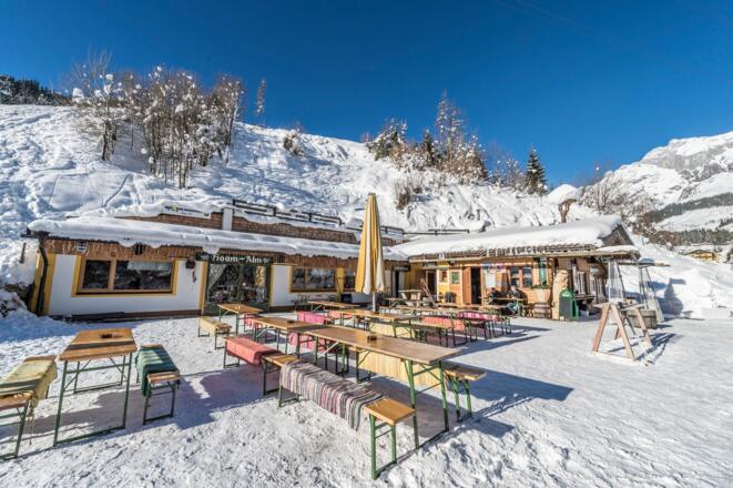 Hier finden Sie das absolute Aprés-Ski Vergnügen direkt an der Talstation der Kabinenbahn Karbachalm.