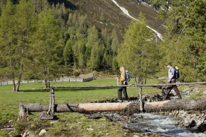 Gestartet wird in Tumpen am Parkplatz bei der Volksschule. Von dort folgt man der Straße Richtung Grube - links führt dann ein Forstweg hinauf vorbei am Tumpener Wasserfall. An der letzten Wegkreuzung zweigt man links Richtung Gehsteig bzw. Vordere Tumpenalm ab. Man folgt dem Forstweg, vorbei an der Vorderen Tumpenalm bis hin zur Hinteren Tumpenalm. Die Alm ist nicht bewirtschaftet! Highlight am ruhigen und abwechslungsreichen Weg ist der Tumpener Wasserfall. Die Vordere Tumpenalm bietet sich zur Halbzeit als Einkehrmöglichkeit an.