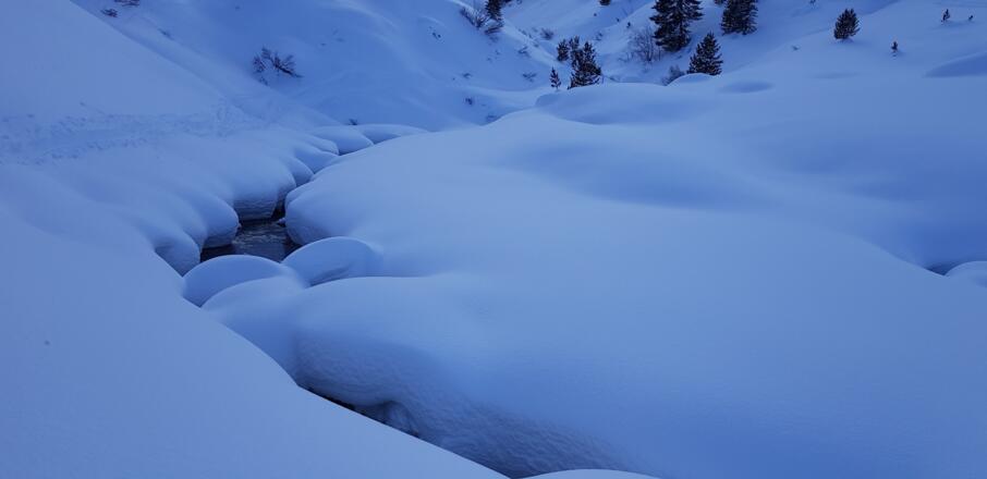 Nur bei guten Verhältnissen im Hochwinter machbar und in dieser Jahreszeit auch am einsamsten. Sonst eine klassische Frühjahrstour. Während andere schon im Firn fahren, können hier noch schöne Pulverhänge befahren werden.