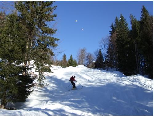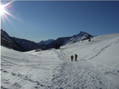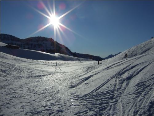 Vom Hohen First zurück zum Dürlstein, einen der wunderbaren Hänge in die "Schaflucke" wählen und hinunter wedeln - links halten! Die stark lawinengefährdeten Abfahrtsvarianten richten sich nach den vorherrschenden Schneeverhältnissen und bedürfen guter Beurteilung! Nicht zu weit abfahren - bei rund 1.230 m werden wieder die Felle aufgezogen, der leichte 70 Höhenmeter-Gegenanstieg zur Genneralm ist ein Kinderspiel - schöne Alternativabfahrt in das Ackersbachtal mit Gegenanstieg (250 Höhenmeter) zur Genneralm - von der Genneralm auf der Forststraße bis nach Lämmerbach abfahren.