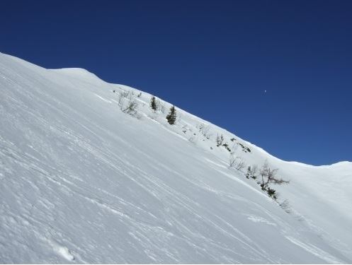 Bis zu Genneralm ein hochfrequentierter Aufstieg, da die Touren auf das Gennerhorn und den beliebten Zinken den gleichen "Zubringer" haben. Herrliche Abfahrt vom Hohen First über die Schaflucken oder in das Ackersbachtal - Ein gutes Beurteilungsvermögen der Lawinensituation ist unbedingt erforderlich! Auch der leichtere Alternativanstieg über das Ackersbachtal ist sehr zu empfehlen (1450 Höhenmeter, 3 1/2 Stunden).