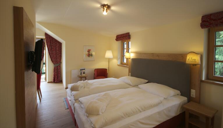 Unsere neu renovierten Landhaus-Zimmer erwarten Sie für einen erholsamen Urlaub. Sie können Ihre Zimmer flexibel buchen, mit oder ohne Frühstück. Genießen Sie ein paar Schritte entfernt im Hotel Hollweger das Panorama-Hallenbad, den Wellnessbereich & weitere Annehmlichkeiten.